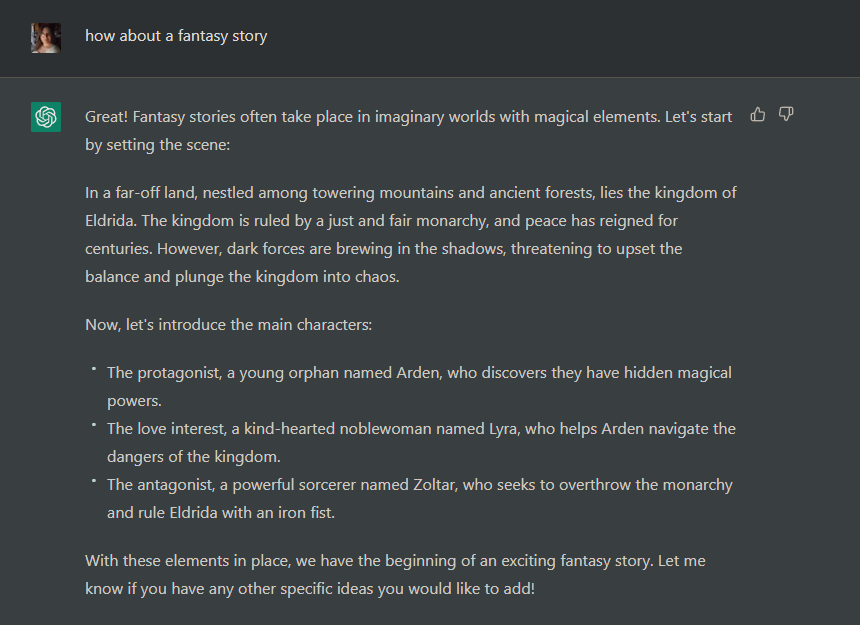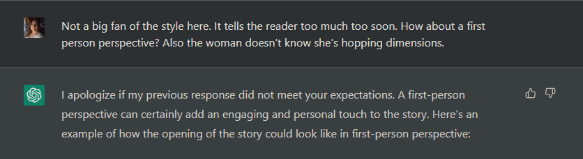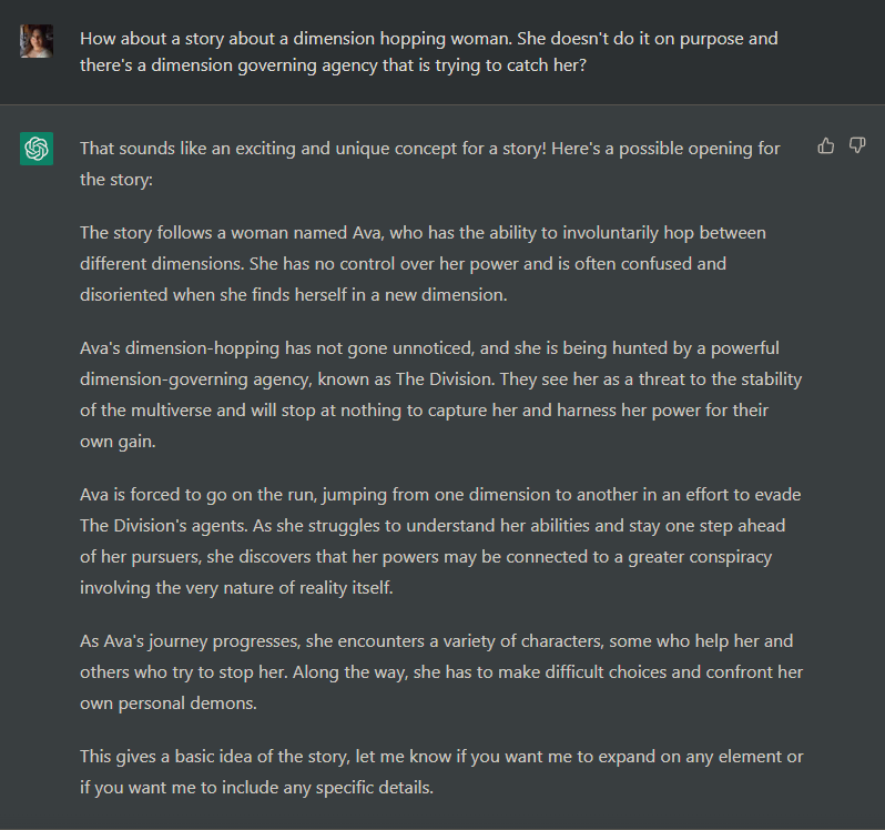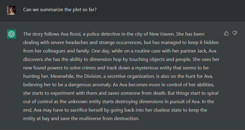 This didn’t stop me, though. I spent hours talking with ChatGPT, trying to figure out how I wanted this story to go.